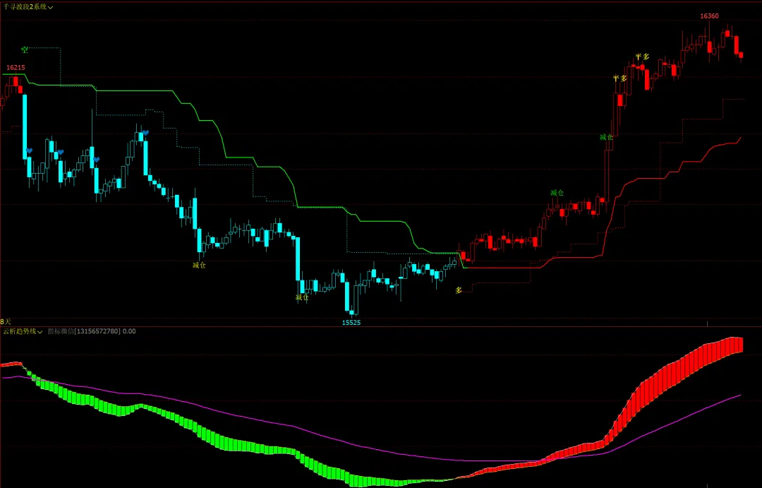 1、千寻波段2系统主图+云析趋势线幅图,无未来函数!
