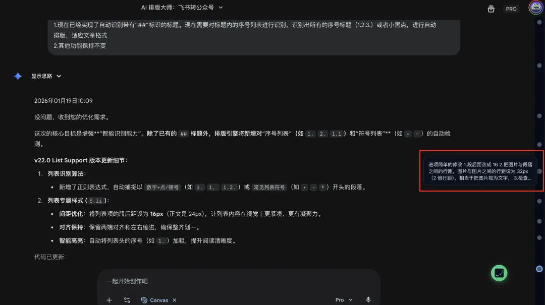 Gemini 的优势是长窗口,我经常丢几万字进去让它分析。但对话轮数一多,问题就来了。你想向上翻找一些内容会变得很困难。