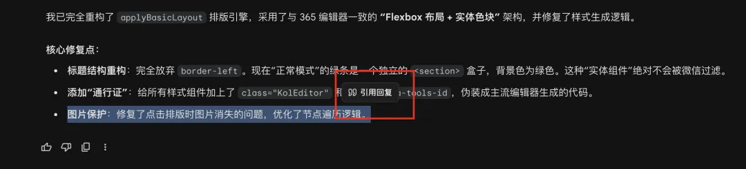简单说就和微信和聊天一样,引用回复,就不会引起歧义,对方知道你是在回复哪句话,避免不必要的误会。使用也非常简单,直接鼠标选取你要回复的话,就会出现一个引用回复按钮。