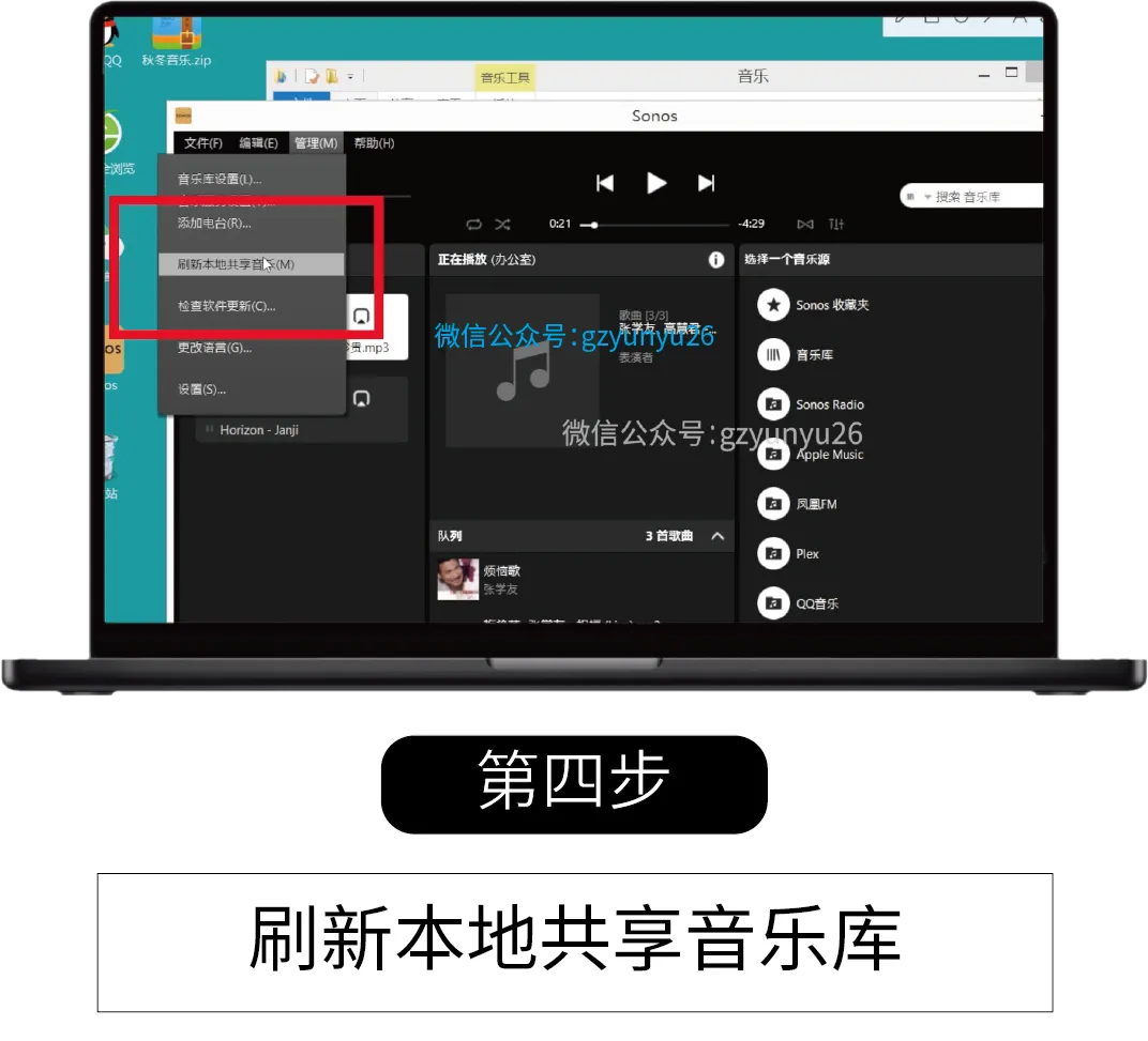 当你向共享文件夹中添加了新歌曲、或删除了旧歌曲后,需要手动更新Sonos索引,新变化才会在App中显示,以下为详细的操作步骤: