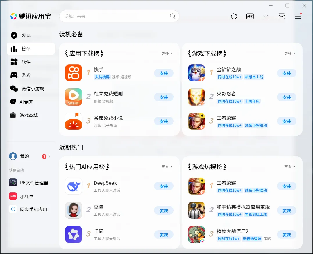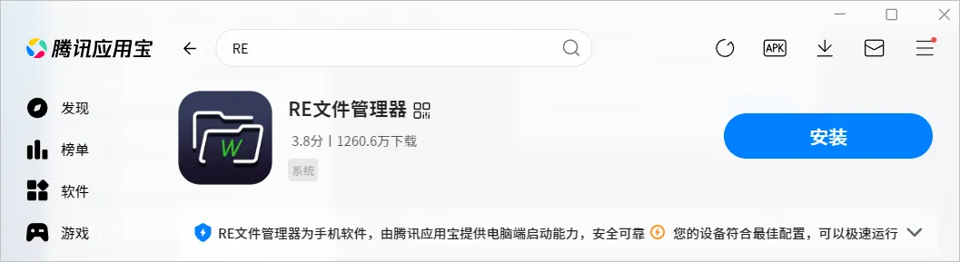 那除外呢,我们也可以直接在腾讯应用宝搜索「RE文件管理器」来进行安装