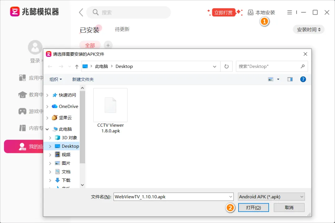 而且相对应用宝,兆懿没有 APP 安装限制,除了应用市场内搜索安装,你可以直接在软件右上角点击「本地安装」来打开 APK