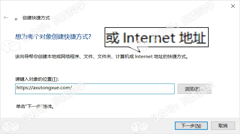 然后稍微仔细一点,你就会发现快捷方式不止可以是文件、文件夹地址,其实网络地址也是可以的