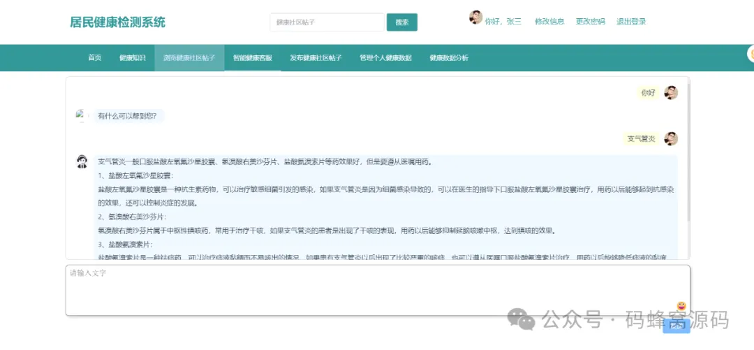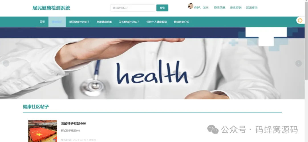 本系统主要功能有:用户注册和登录、健康知识、健康社区帖子发布、帖子回复、健康数据管理、健康数据分析等模块: