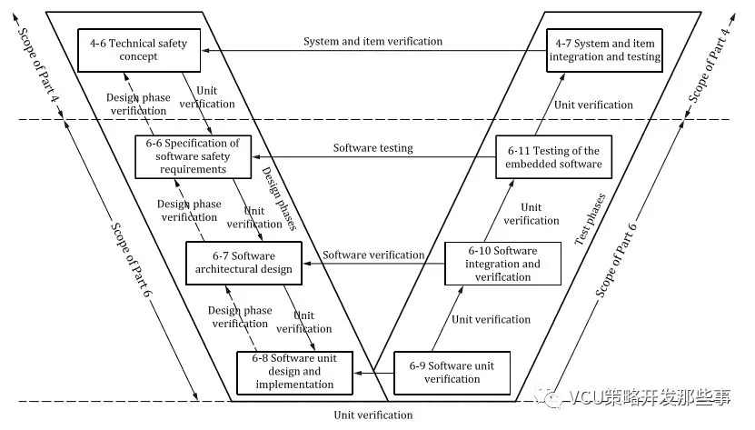 对于软件开发流程,也可以参考ISO26262中关于软件层级产品开发的要求描述(26262 Part 6),软件开发阶段推荐流程模型如下图: