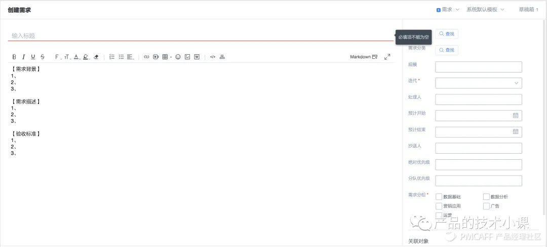 如果一份需求需要多个开发角色来完成,比如数据分析师、前端、后台。建议把需求拆成1个父单和3个子单,父单有需求的总体描述,子单是对应到不同角色的需求描述。