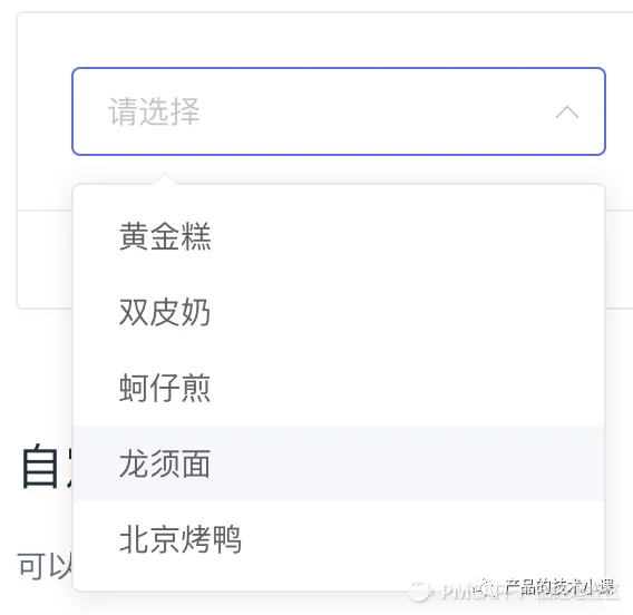 描述1(bad): 搜索新增一个选择食品的下拉选择框,当选择食品时,把食品名称展示在输入框中,支持单选搜索。