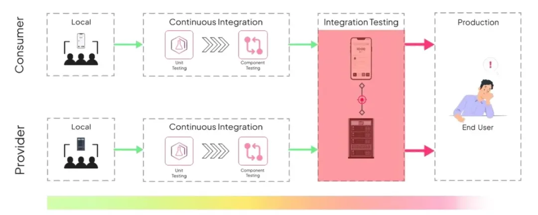 集成环境可能非常脆弱。由于两个组件或服务之间的兼容性问题,即使是单个中断的交互也会导致整个环境受到损害,这意味着即使是其他不相关的功能和微服务也无法测试。