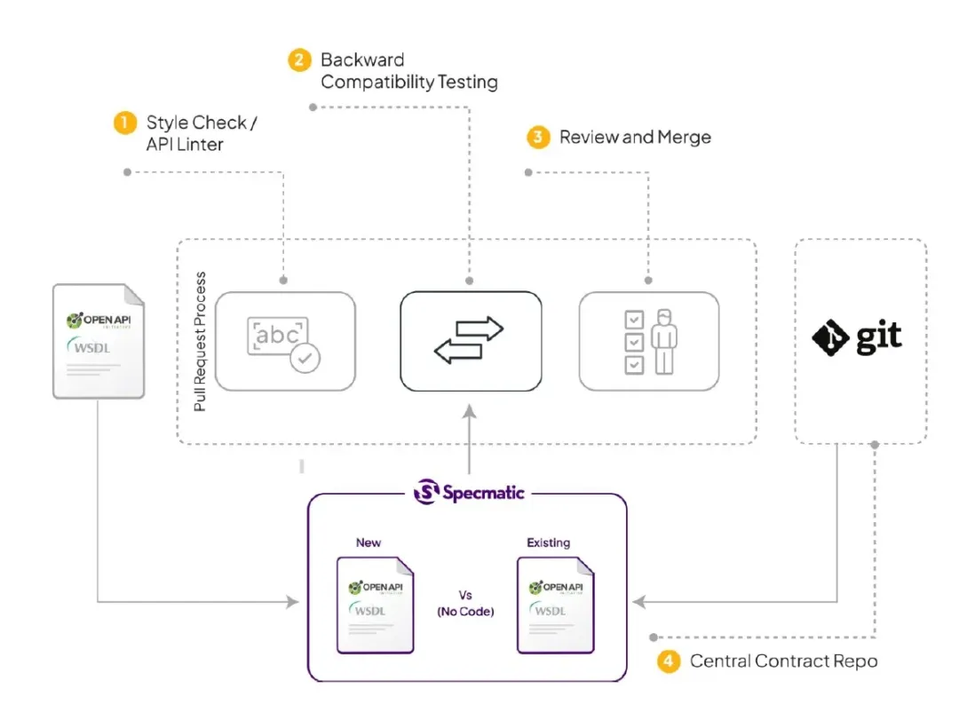 API 规范是机器可解析的代码,所以还有什么地方比版本控制系统更适合存储它们的呢?将它们存储在版本控制系统(如 Git)中,我们就可以通过添加 Pull/Merge 请求过程来为它们的构建过程增加一些严格性。理想情况下,Pull/Merge 请求应该包括以下步骤: