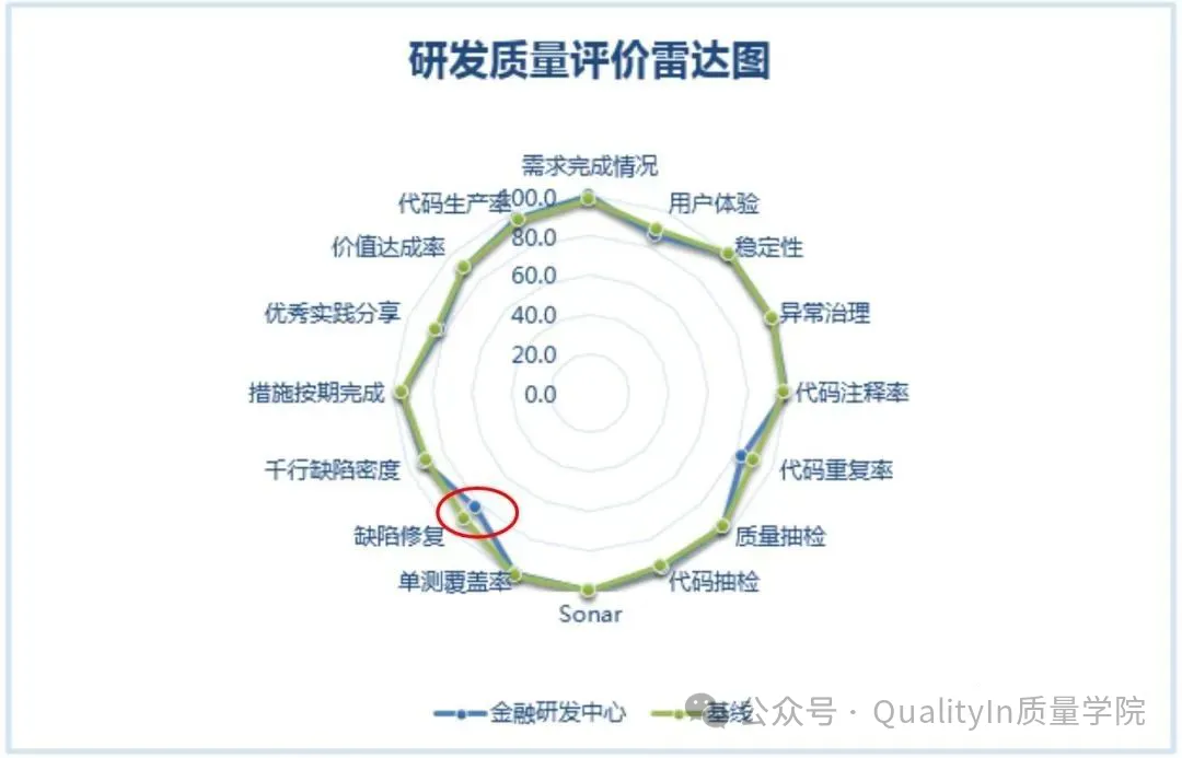 通过雷达图,我们可以方便地识别在“缺陷修复”这个指标上整个组织是存在短板的,需要进行专项改进。