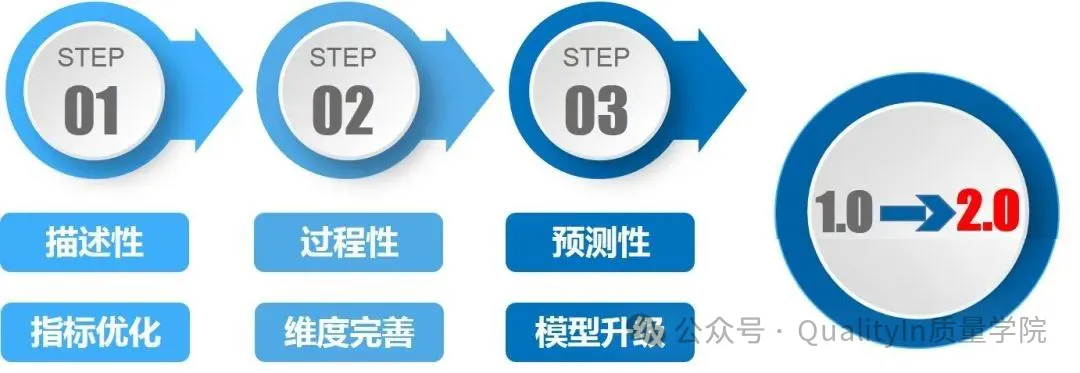研发质量评价模型不是一成不变的,它有一个逐步演进的过程。我们的模型已经初步完成了从1.0到2.0的转变。