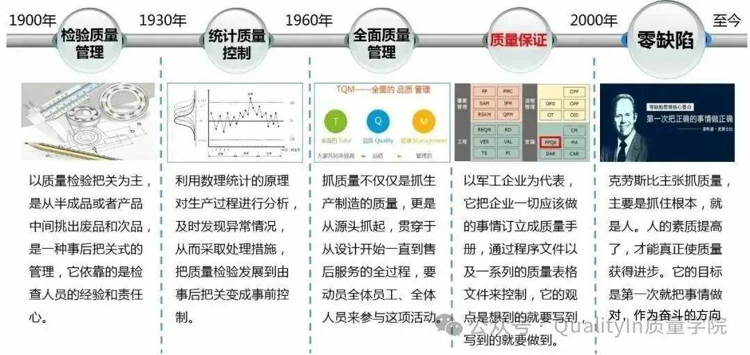 以上三个问题反映的都是表象,归根结底说的还是关于SQA的定位及其岗位职责的问题。追根溯源,这就不得不回顾下质量管理的百年发展史。