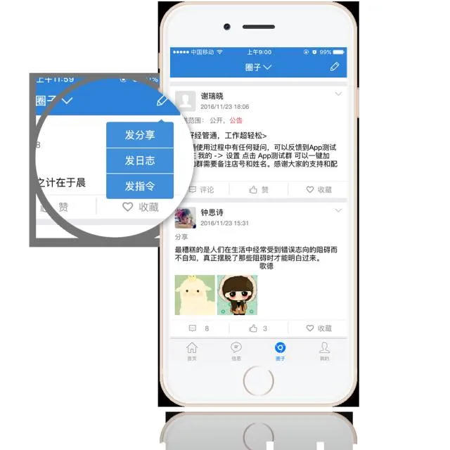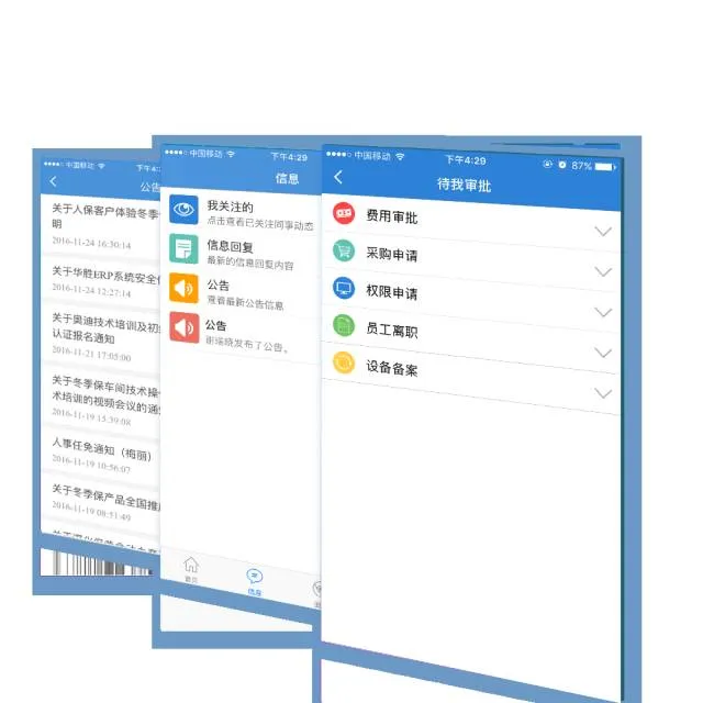 能够手机进行流程审批,查看通知公告,进行任务分配,设置工作提醒。