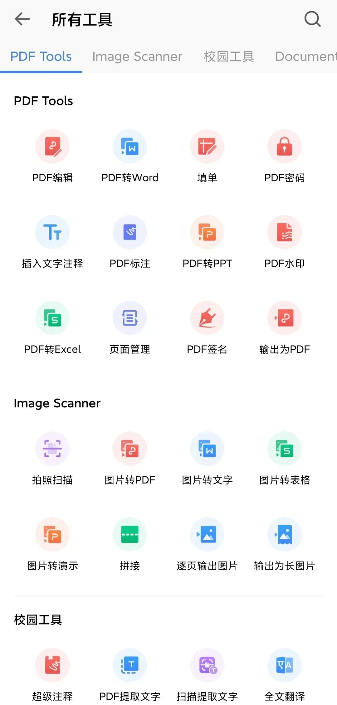 支持全套的PDF工具,pdf编辑、PDF转换,如pdf转word,pdf转ppt,pdf转excel等等,图文识别、文档翻译、文档水印、文档转换等等一大堆!