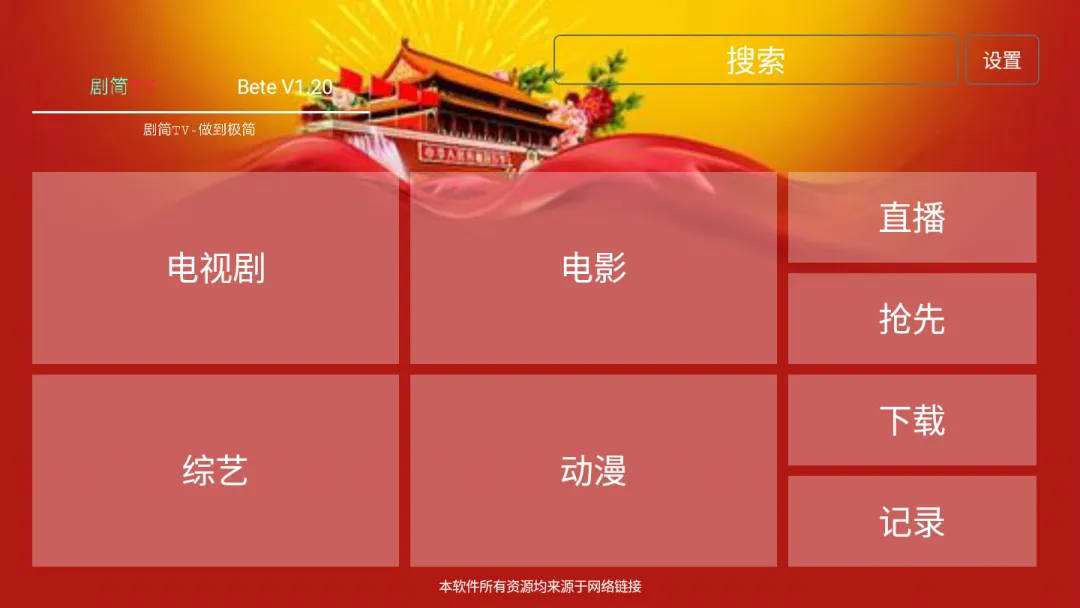 剧简TV过年的时候分享锅一次,没想到,原作者到现在,还在用大红色的天安门,真是爱国者呀(感觉作者是不是党员),受不了这片红的小伙伴,不要安装!!