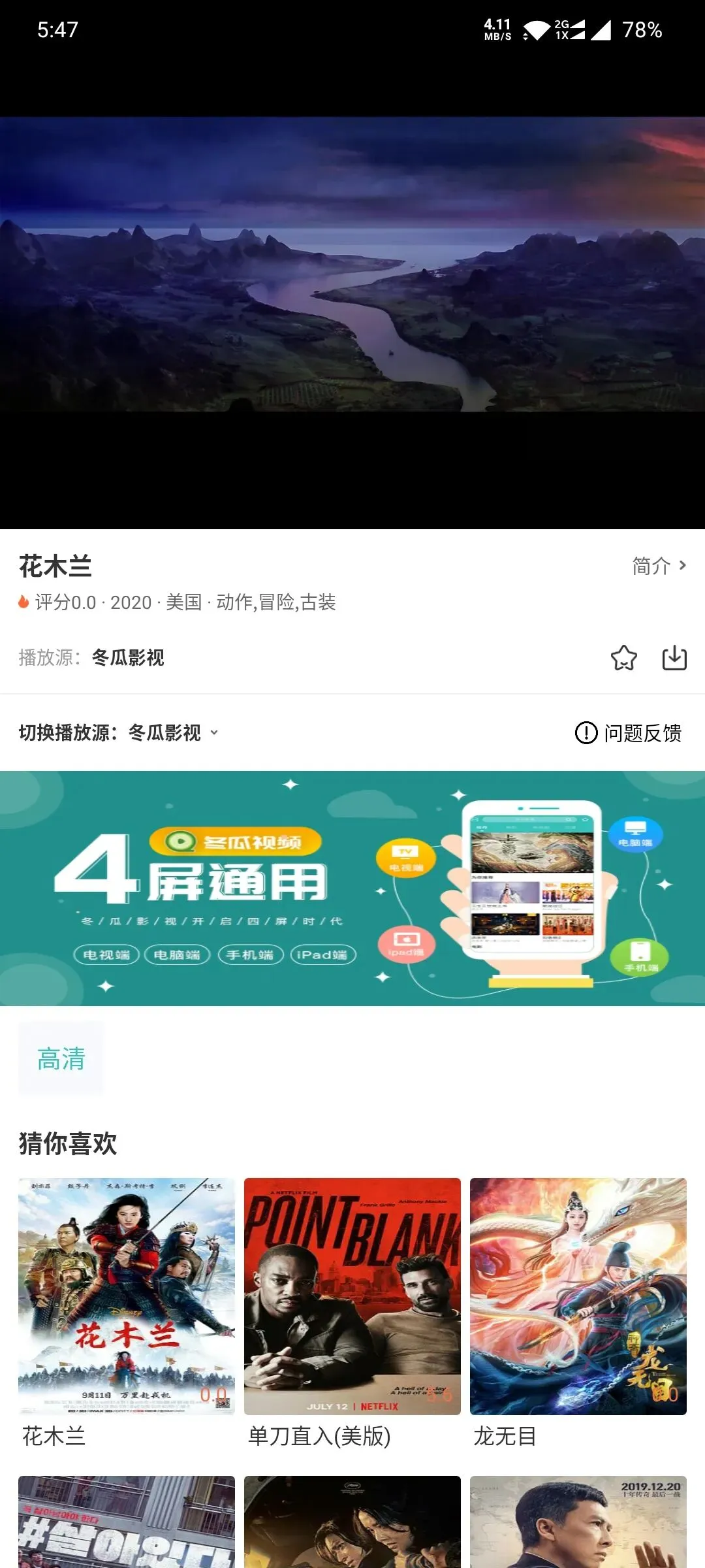 四个版本用的都是一样的播放源,所以大家不必担心源的质量。谈不上秒加载,但绝对稳定不卡!并且播放源中也没有飘过去的广告,还是非常舒服的!