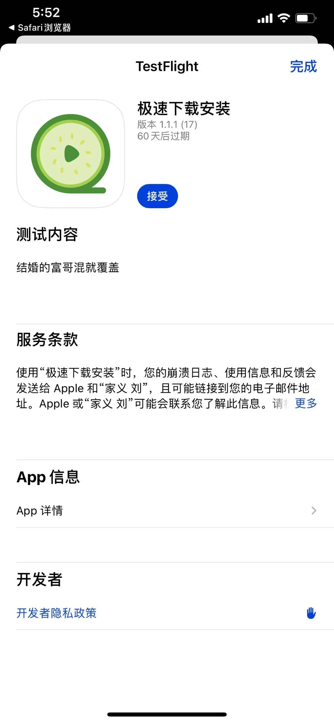 在App Store下载“TestFlight”即可安装。