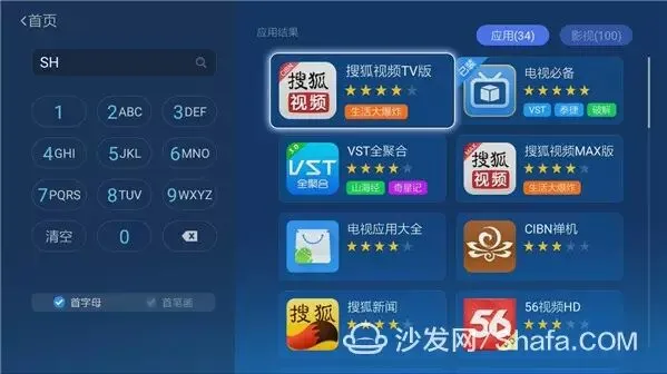 3.在搜索框内输入搜狐视频的拼音首字母“SH”即可看到搜索结果