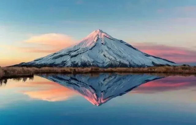 对称构图有上下对称、左右对称等,具有稳定平衡的特点。例如,湖面水中倒影,表达出唯美意境,画面平衡性的特点。