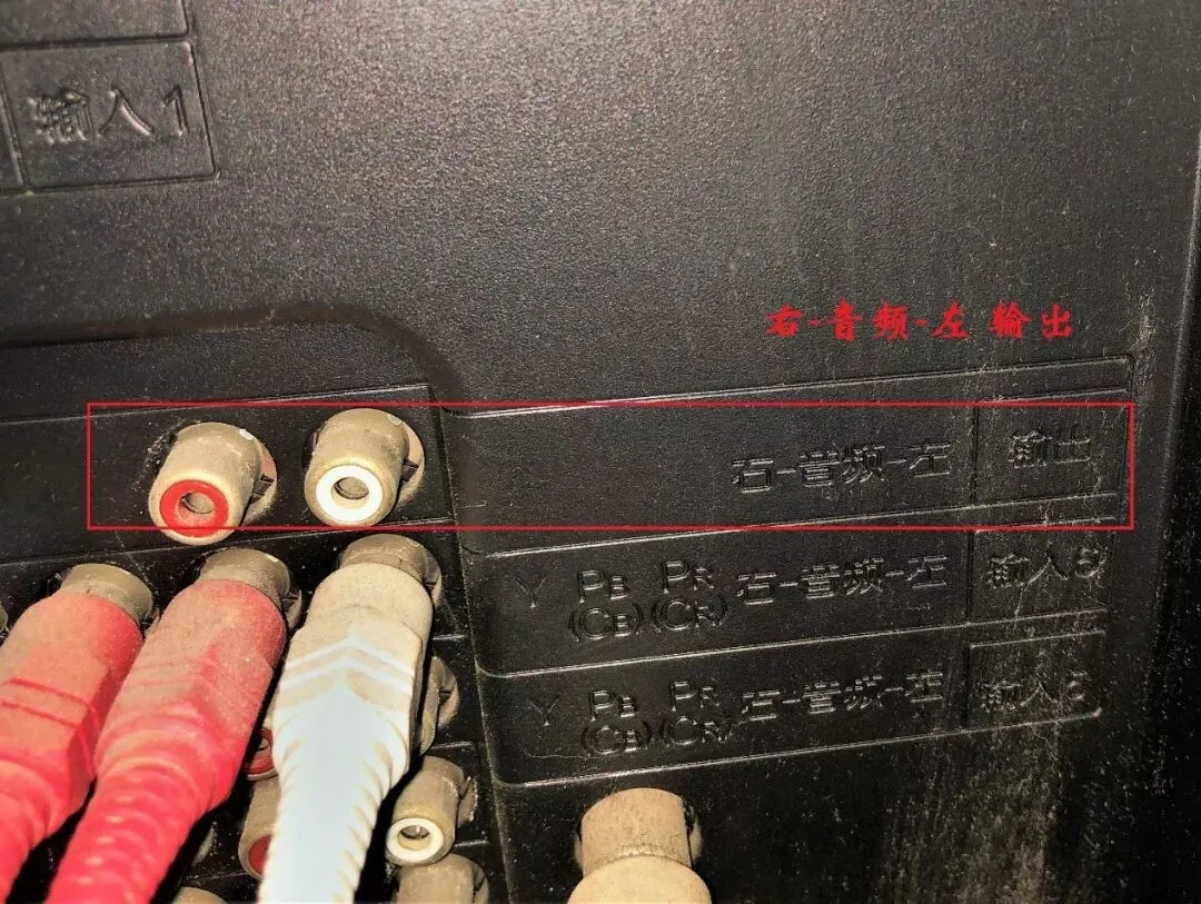 这是电视机后面的插口图片。这里明确写出了音频输出,所以,直接插上2转2音频线即可。