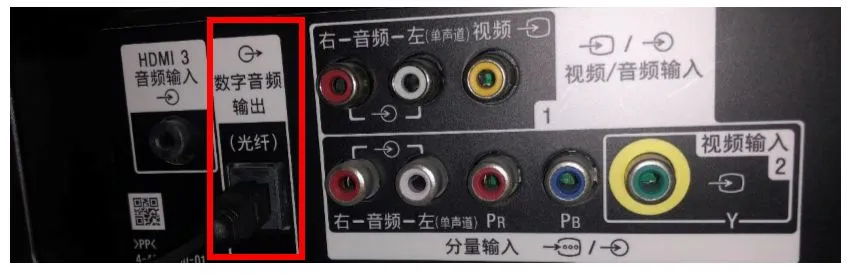 这里能看到的“输出”只有“数字音频输出”,其它都是输入,所以,直接插上光纤音频线即可。
