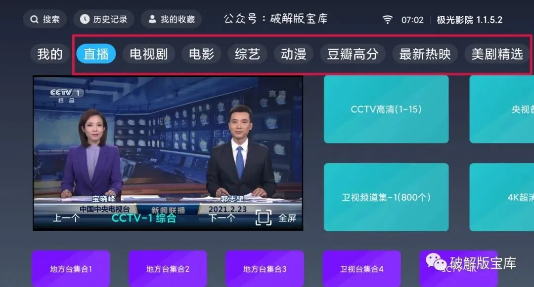 『网络电视』板块即电视直播频道,点击任意的+即可进入,太牛了,全部是1080超清画质,包含央视卫视少儿卡通以及港澳台等频道。