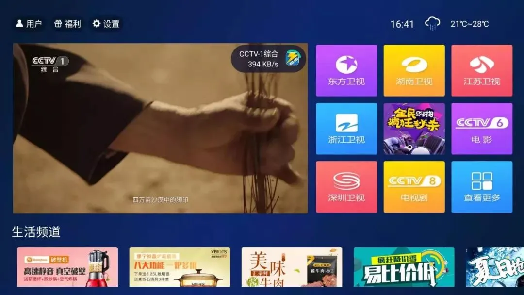 软件打开十分简洁,主页上有几个常见的热门频道,方便大家观看。