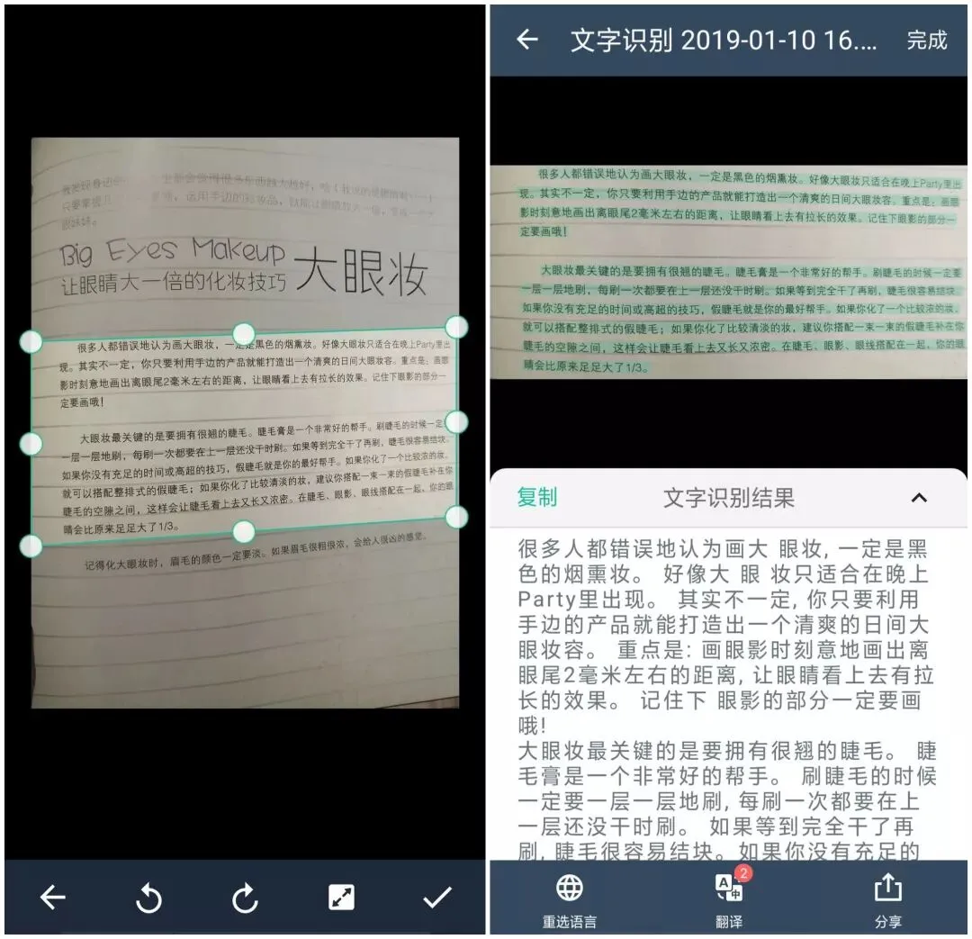 还可以OCR呢,就是从图片中提取文字。非常实用~