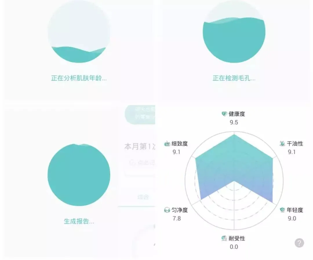 它是一款测试你的皮肤性质的APP ,会根据你皮肤的健康度、干油性、年轻度、耐受性、匀净度、细致度,测出你的肌龄和肌肤健康程度。