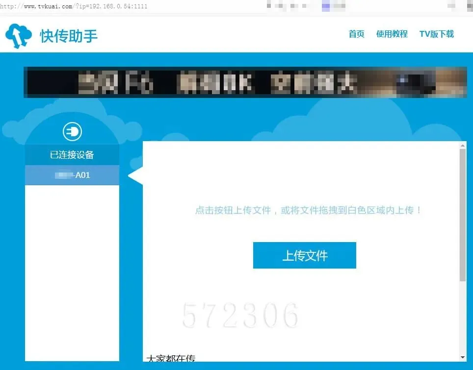 步骤二: 在电脑浏览器中输入网址 w w w.t v k u a i. c o m 选择设备和文件进行上传;或手机扫码选择手机内的文件进行上传;