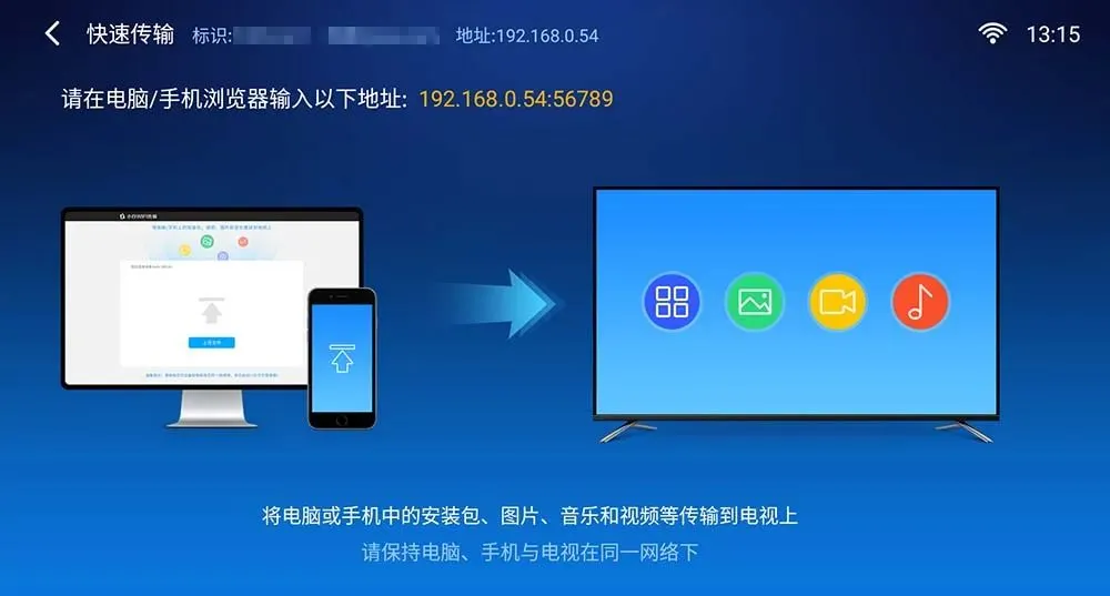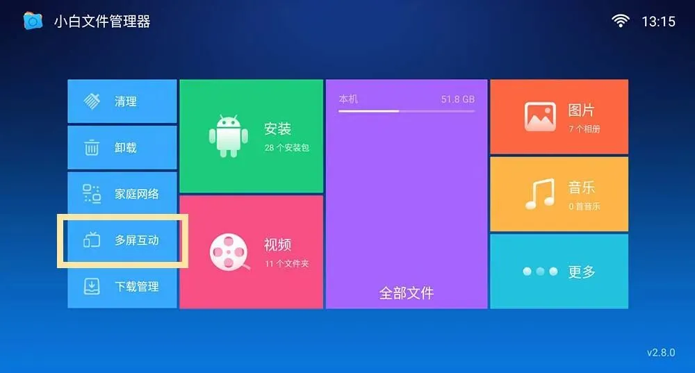 首先在电视、TV盒子等目标设备上安装好“小白文件管理器”,安装方法见上面方式一。
