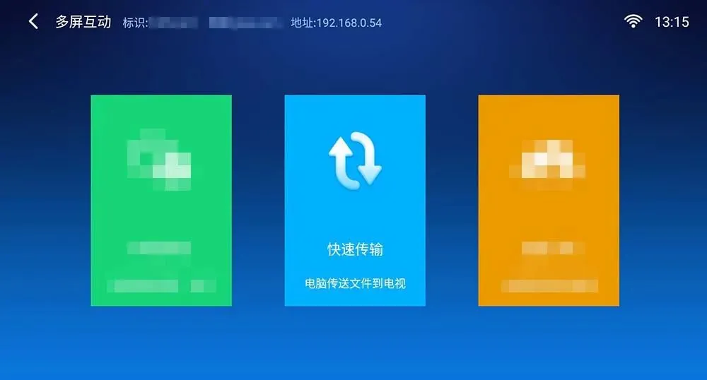 这里我们只选择“多屏互动”功能,通过电脑推送文件到目标设备,选择中间的“快速传输”。(左右两项功能已停用)