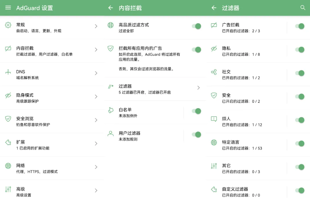 软件还内置了隐身模式、安全浏览、过滤器等功能,在过滤器中可自定义详细的拦截规则,帮助用户彻底远离有害的网站 / 内容。