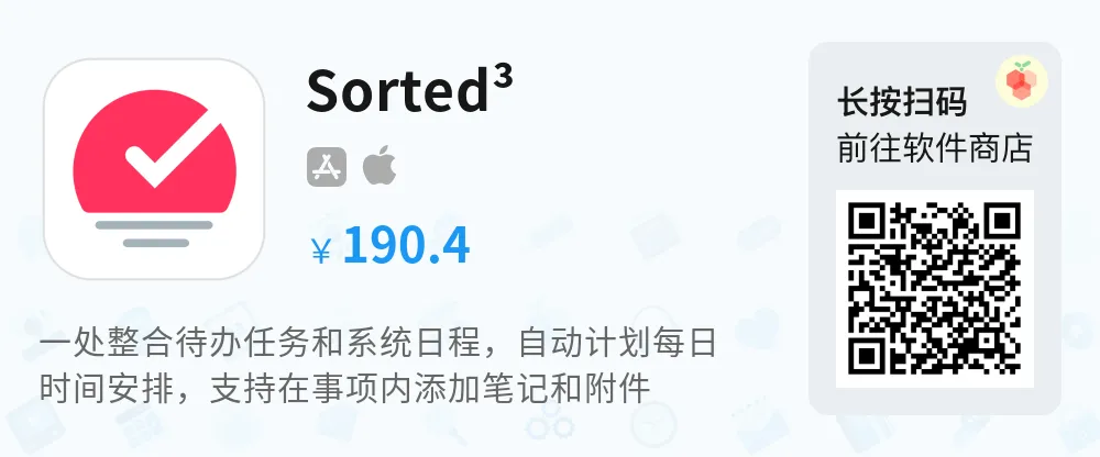 快来试试 Sorted³ 吧!它是一款专为苹果用户打造的日程待办任务管理应用,能自动计划全天时间安排,只需一个应用就能高效管理你的一天。