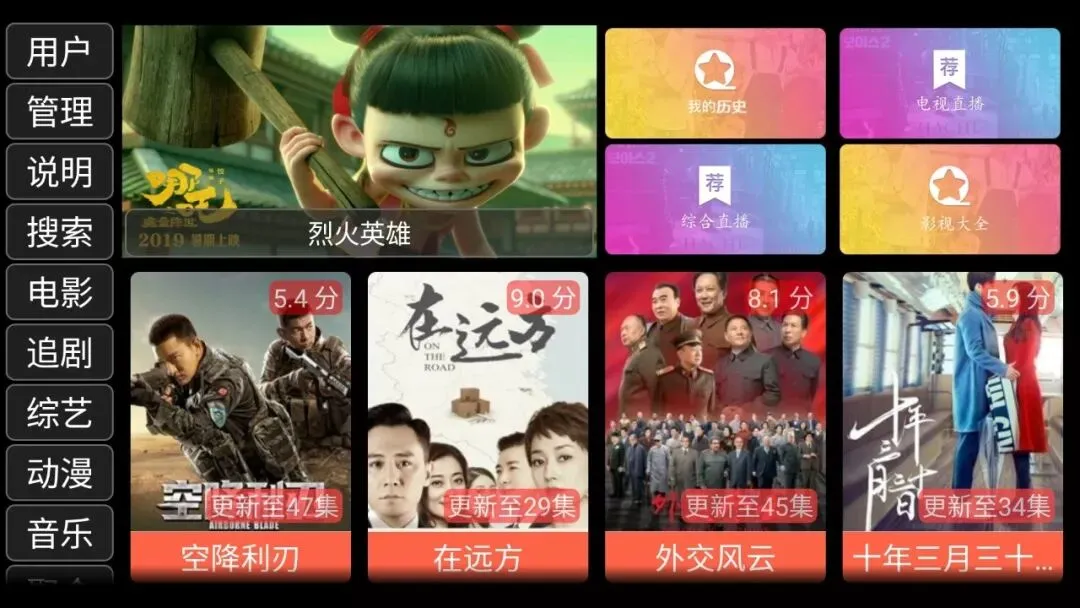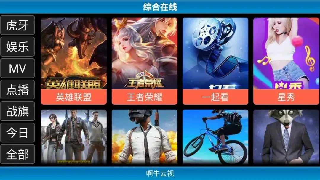 软件的名称是“阿牛云视TV”,这款软件同样可以在安卓手机上使用,不过软件主打的是电视盒子,所以整个页面的UI更适配于电视: