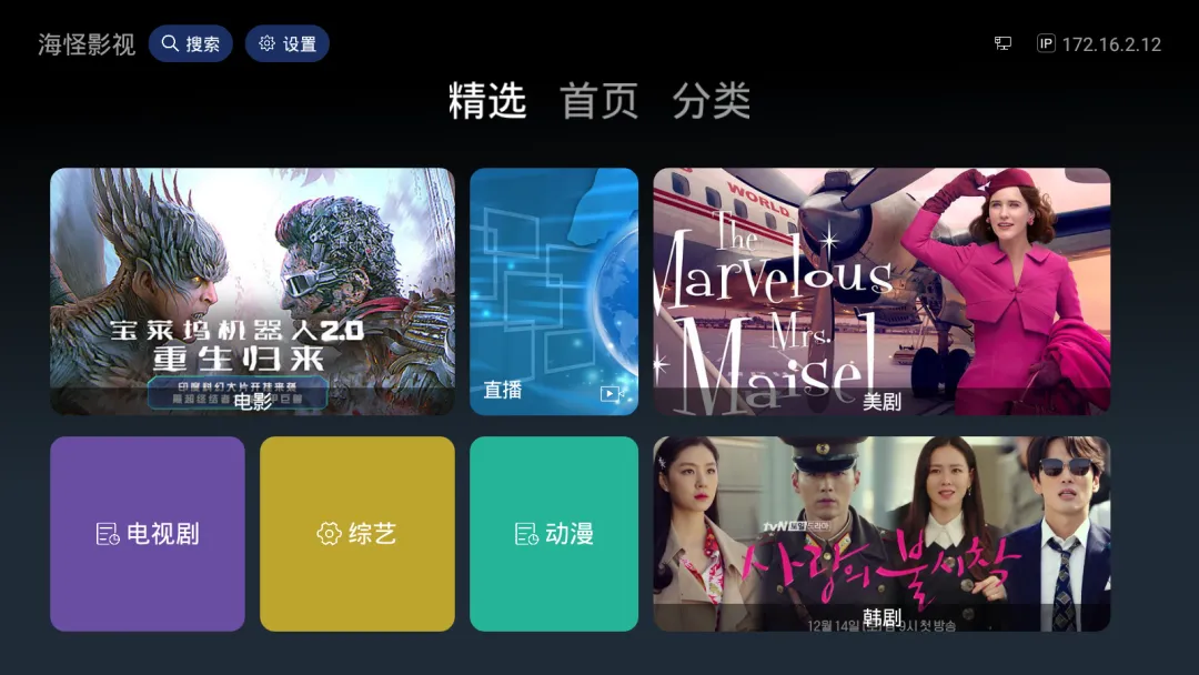 软件叫海怪影视,首页就是这样的精选分类,以国外的的影视资源为主。官方介绍它通过先进AI智能算法。