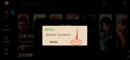 如果点击进去网页,会有两个模式,网页浏览模式和轻站模式,轻站模式适配i酷浏览器,当然浏览模式就不行了,但是也可以播放!
