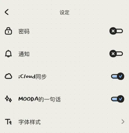 在设定里,你可以选择把“通知”打开,它将会在每晚固定的时间提醒你去记录自己今天的心情。