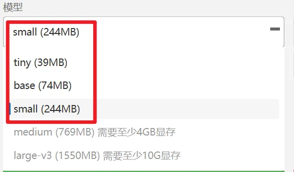 small:识别更准,速度稍慢,适合对质量有要求的场景