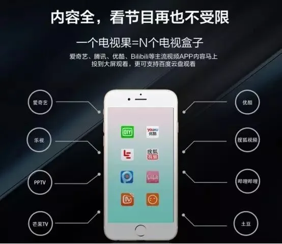 电视果目前支持爱奇艺视频、腾讯视频、优酷视频、土豆视频、搜狐视频、乐视视频、芒果TV视频、PPTV等主流视频网站,如果用当下流行语来形容,那就是开启内容生态。打开视频应用的播放器界面找到“投屏”按钮,自动适配获取1080P高清视频效果。如果找不到各应用“投屏”按钮,可以详细看电视果上面的各种应用画面“投影”方法提示。特别一点,电视果与爱奇艺视频网站进行了深度定制,独家实现免广告、视频连播、播放记录云端同步等贴心功能。