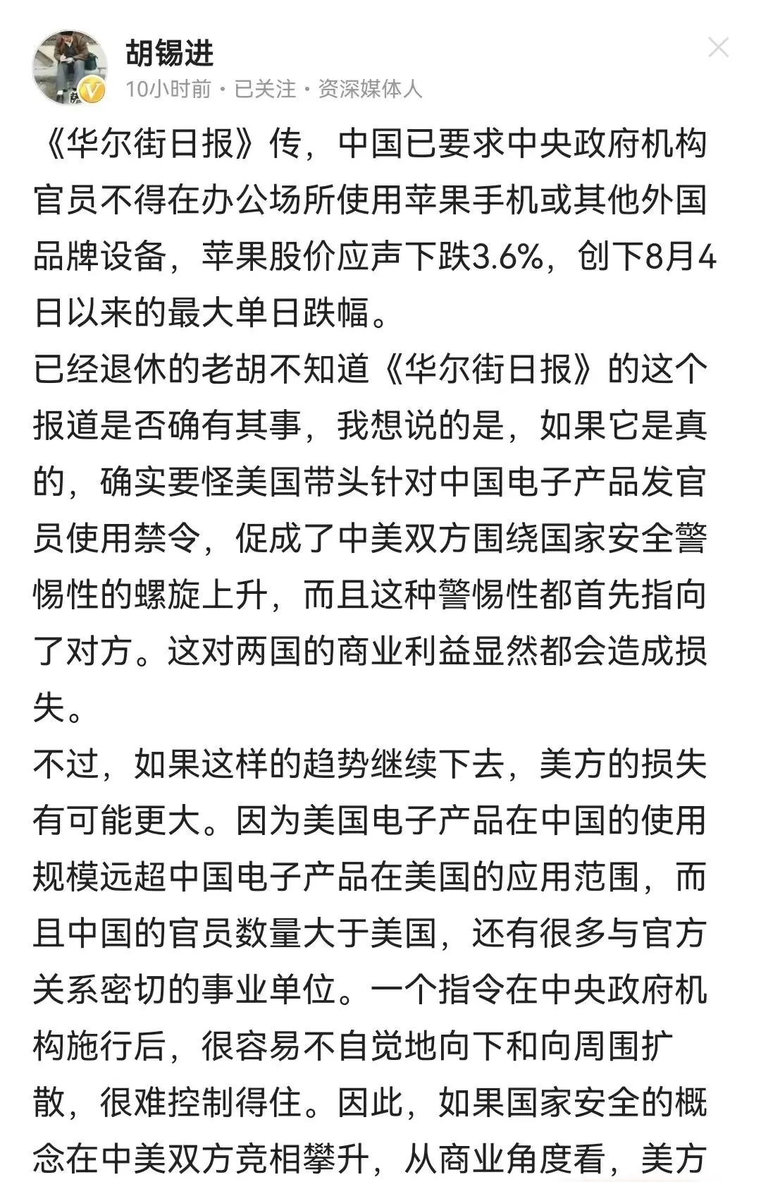 比如一位网友提到刚接到通知,所有人不能使用苹果设备来处理工作信息,包括苹果手机等所有设备都禁止使用。