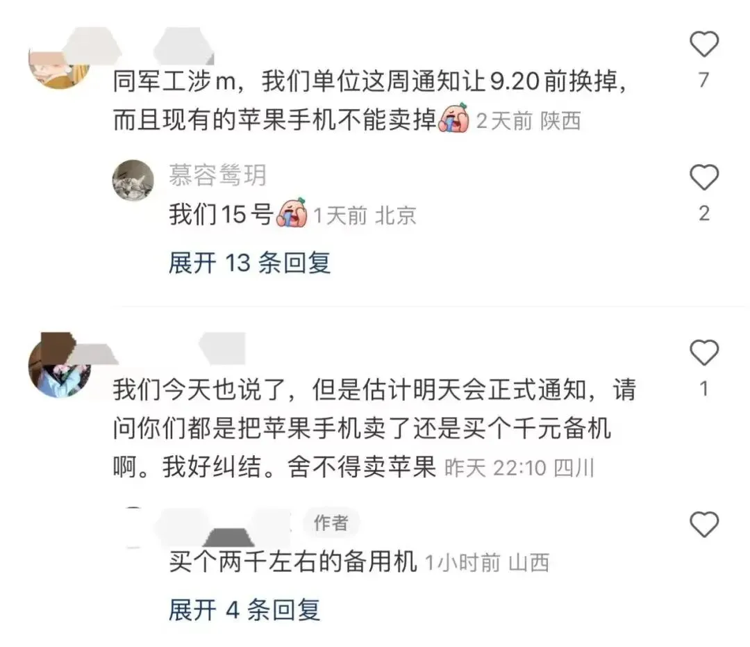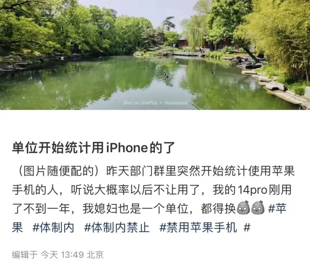 从这些网友反馈的实际情况来看,大概率应该接到了内部通知,要求禁止在办公场所使用苹果手机,虽然这种通知并不是公开的,但部门应该已经慢慢在实施了。