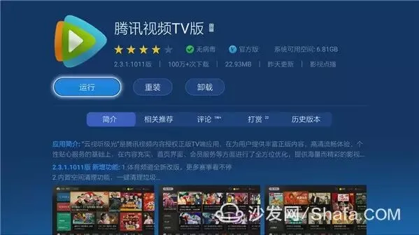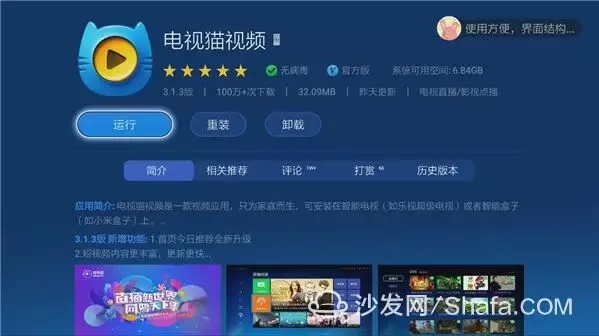 沙发管家是目前智能电视、互联网机顶盒上的应用商店与优化工具。在这里,有数千款智能电视、互联网机顶盒游戏与应用供您下载。以沙发网开放平台为强力的技术依托、严格完善的开发者实名认证体系的保障下,为用户提供安全、优质、快捷的第三方应用下载体验。每天推荐时下热门的应用和好玩的游戏,让您成为智能电视达人。沙发管家还内置了一键清理、远程安装、流量监控、应用备份、火箭加速、网络检测、自启动管理、文件管理等常用功能。