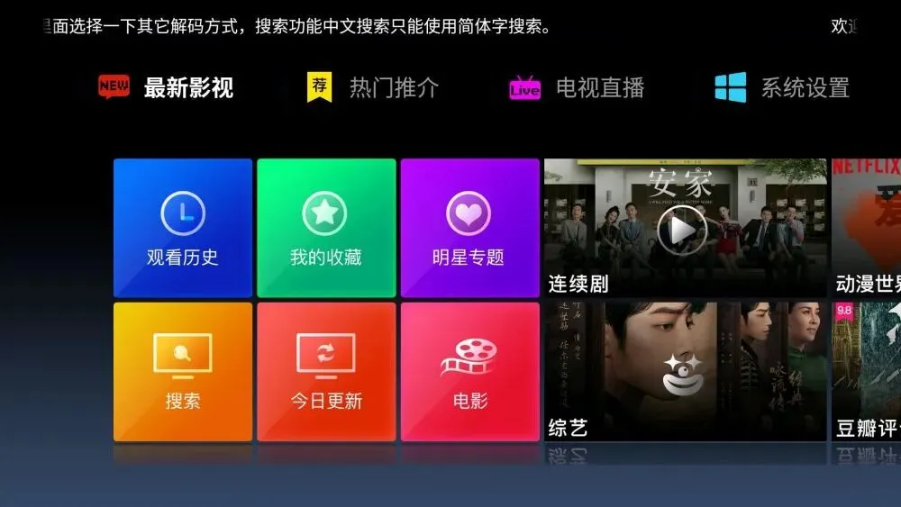 一个TV 全能影视类盒子APP,涵盖了影戏、综艺、动漫、电视剧、电视直播,资源丰厚!内置多线路剖析,全网VIP付费影视根本都能看。