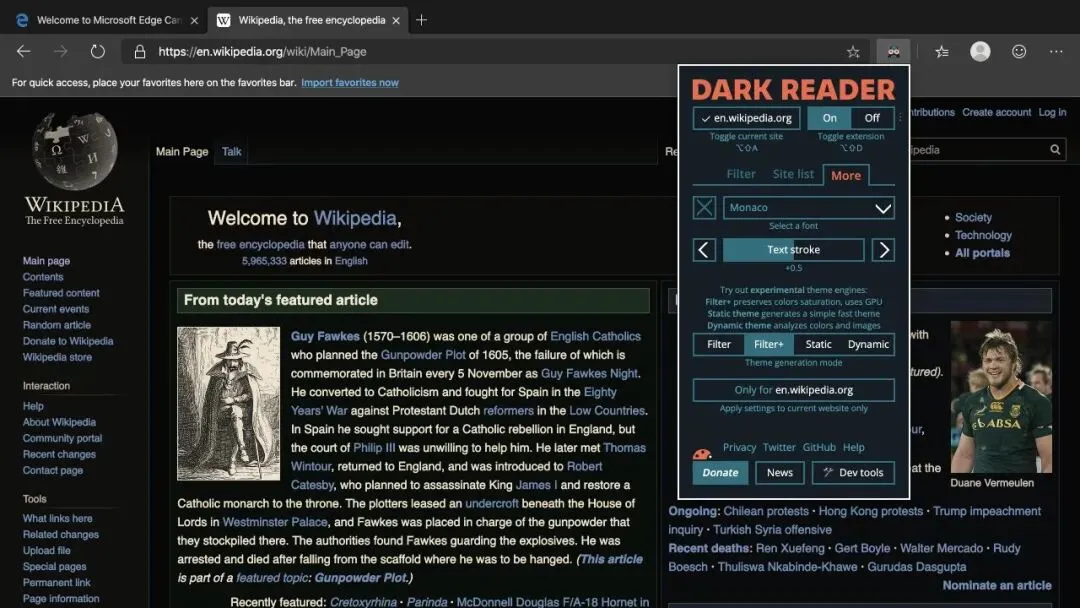 3.Dark Reader:网页强制暗黑模式,自定义亮度 / 色温,护眼适配长时间阅读。