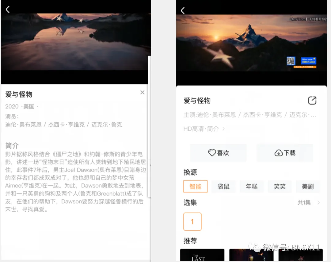 随意选择一个视频,进入详情页面,视频的详细介绍、选择集数、选择播放线路、下载、收藏等等功能。