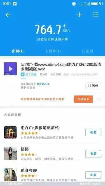 最近也给大家分享了不少手机看VIP视频和电影的软件,大家反映都很喜欢,唯一的不足可能就是不支持影视资源的下载。《电视直播》软件虽然能看,但是基本上基于网页的形式的,《旗鱼影视》虽很很不错,但是VIP资源更新捕后不够及时,今天看了一眼《青云志》才更新到23集,《老九门》更新到42集,总是慢了一拍。今天分享的这款手机APP软件不仅可以在线看VIP高清的电视资源,还提供了迅雷下载链接,只要安装了迅雷,直接复制下载链接到迅雷新建下载任务就可以了,邦主觉得这个目前为止遇到最好的一款手机看VIP视频和电影的APP软件了,唯一可惜的是该软件只有安卓版,主要是感谢安卓开源的精神才只有如此神器,苹果封闭生态系统就只能望洋兴叹了!下面就简单介绍一下该软件!