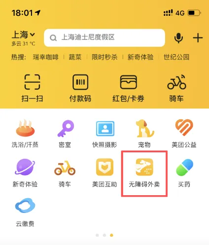 另外,在这次的体验中,小黑无意之中还有一个神奇的发现:美团在功能区的第三页发现了一项对视力障碍者异常友好的功能:无障碍外卖。