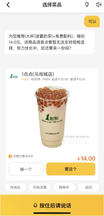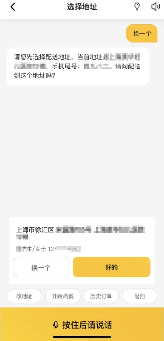 此外,从按下麦克风键到正式开始录音之间,有一定的反应时间,对语音识别的准确率有所影响。在选择配送地址时,无障碍外卖功能不支持编辑配送地址,只能在已有地址中进行选择。