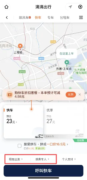 ▲ 滴滴出行小程序端的预约和代叫功能入口在呼叫页面